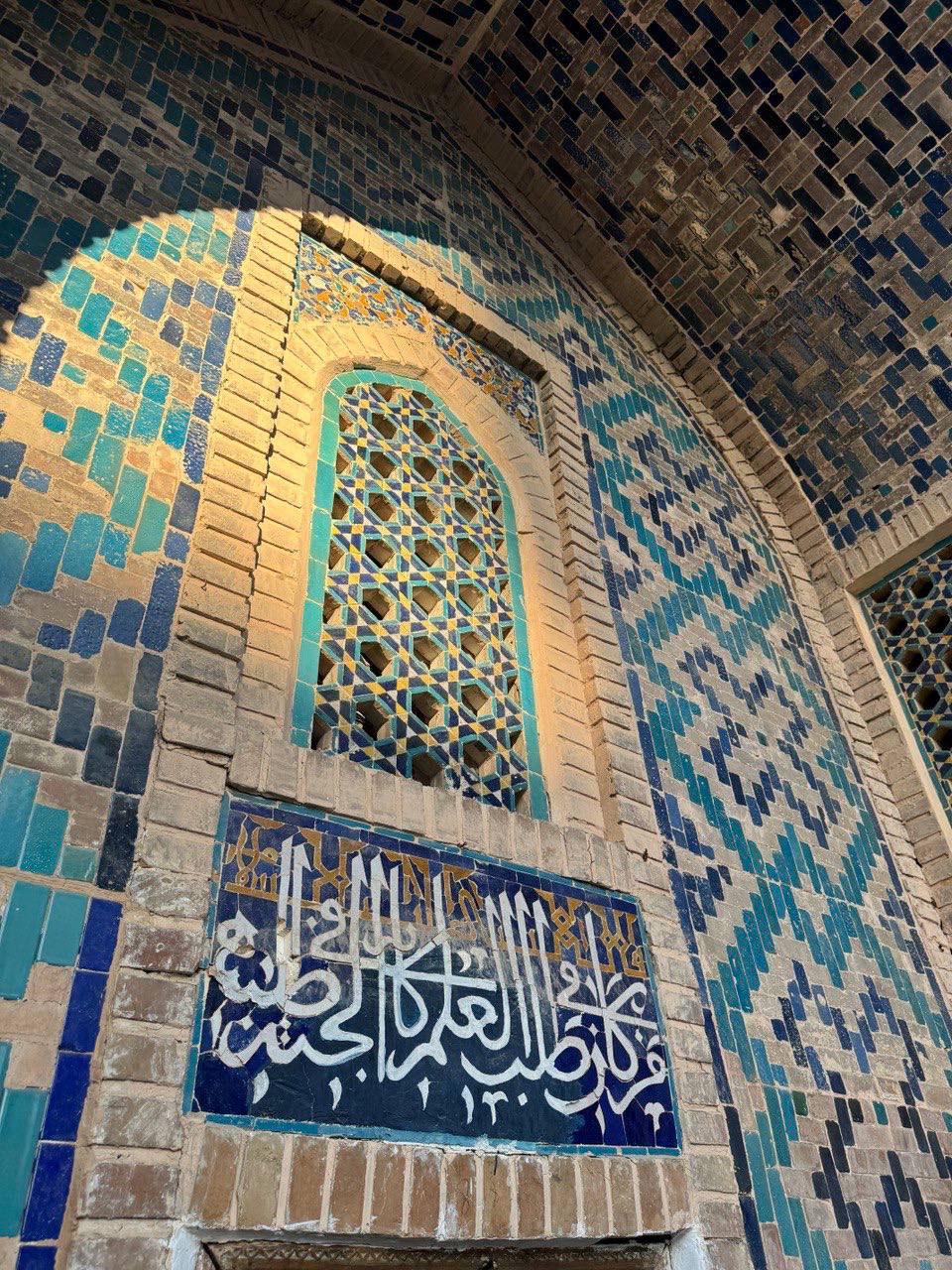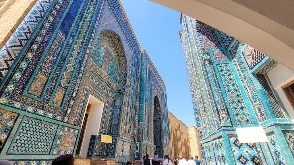 We then headed to the Shāh-i-Zinda Complex. It includes mausoleums and other buildings spanning from the 11th to the 19th centuries. The name “Shah-i-Zinda” means “The Living King” and is connected to the fact that Qutham ibn Abbas (raḍiy Allāhu ʿanh), a cousin of Muhammad (ﷺ), is buried here. The complex features more than twenty buildings, with structures dating back to different periods. Other notable elements include the Khoja-Ahmad Mausoleum, and the Turkan Ago Mausoleum.
