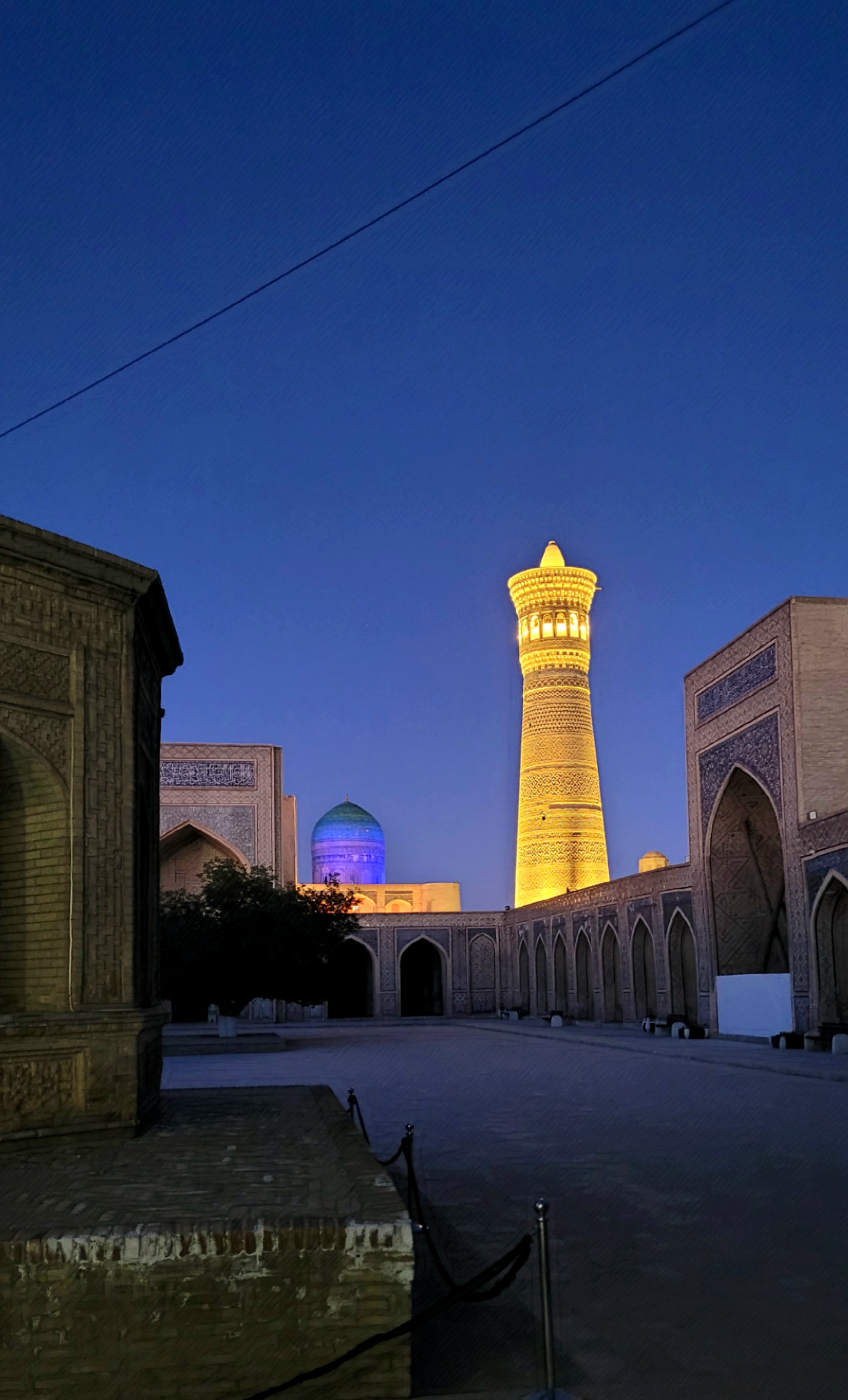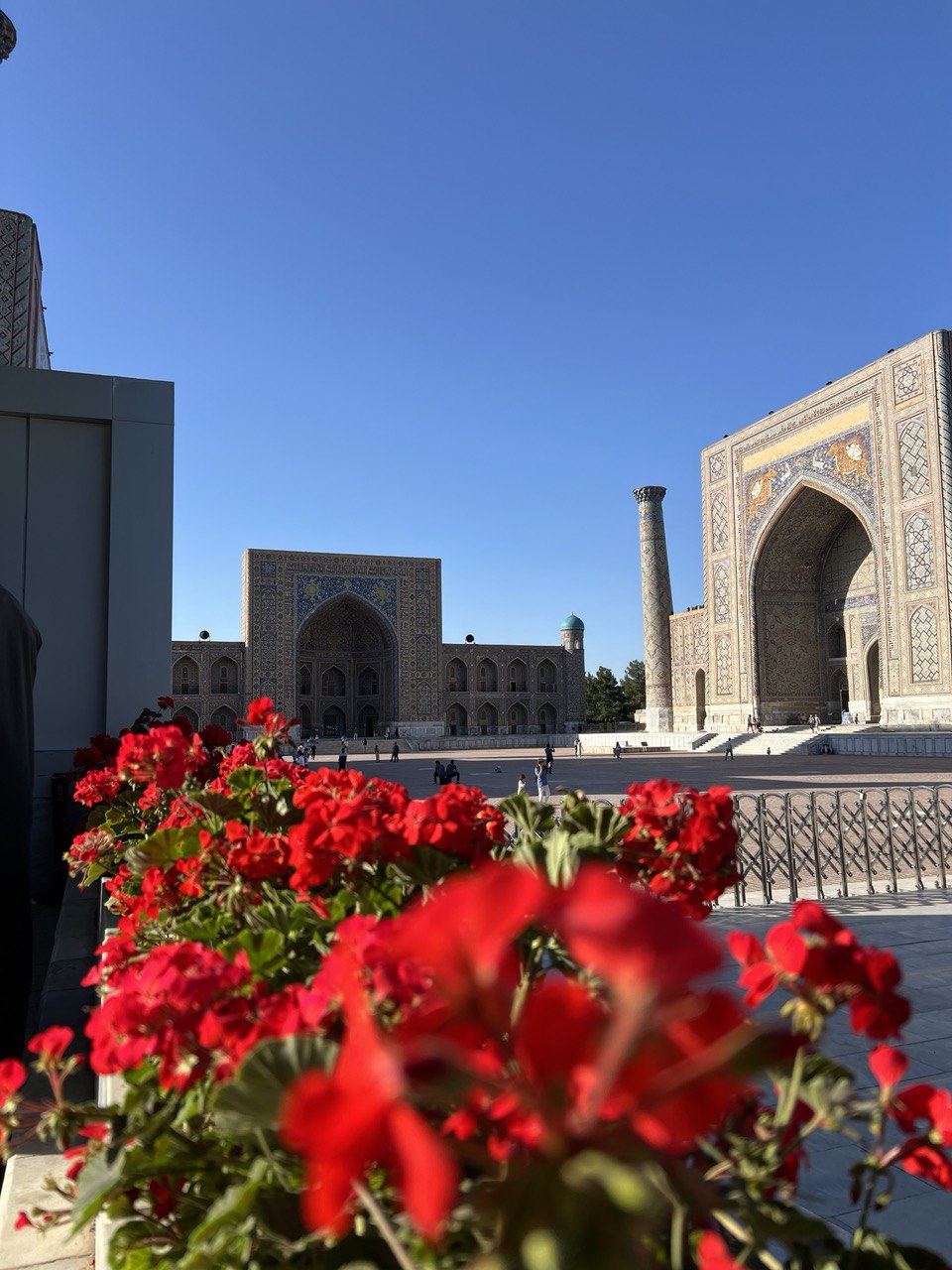 Finally, we visited Registan Square. The Registan Square in Samarkand, Uzbekistan was the medieval heart of the city. It served as a public square where people gathered to hear royal news and witness justice being administered. Founded around 700 BC, Samarkand thrived as a prosperous centre of commerce along the Silk Road. The Registan, now part of the UNESCO World Heritage site, consists of three ornate madrasas adorned with glazed clay tiles. The Ulugh Beg Madrasa, dating back to 1420, is the oldest, while the Sher-Dor and Tillya-Kori madrasas were built in the 17th century. Today, the Registan remains a symbol of Samarkand’s prosperity and is beautifully illuminated at night.