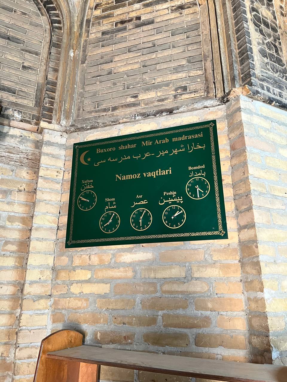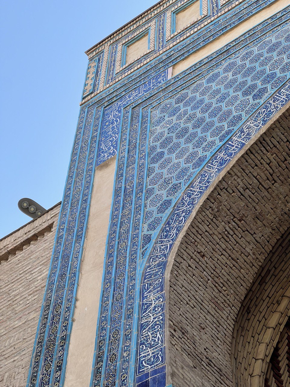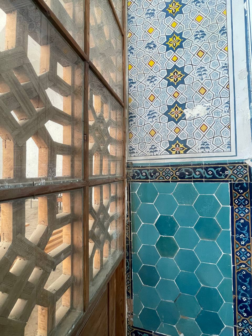 Next, we visited the Ko’kaldosh Madrasa, built around 1570 by the Shaybanid ruler Dervish Sultan. Inside its walls, the rooms around the inner courtyard housed students. This place touched me deeply. Growing up studying Islam in Canada at a dar al-‘ulum, I often felt like I had to blend in with my peers from the Subcontinent. I avoided talking about my own culture and tried to fit in. As I grew older and learned more about my roots, I finally felt confident and content. But I still felt a void—longing for a connection to my own people who studied the Din. This is why the Ko’kaldosh Madrasa was so moving for me. For the first time, I saw my own people studying Islam freely, embracing their own unique attire and culture. Young men walked in and out of their chambers, wearing traditional ‘yaktak‘ coats and distinctive square hats with white patterns. Their curriculum was an adaptation of the well-known ‘Nizami curriculum,’ similar to what’s studied in the dar al-ulums of the Subcontinent, South Africa, and parts of the Western World. A few classrooms were reserved for women to attend weekly classes, though the madrasa officially catered to boys.