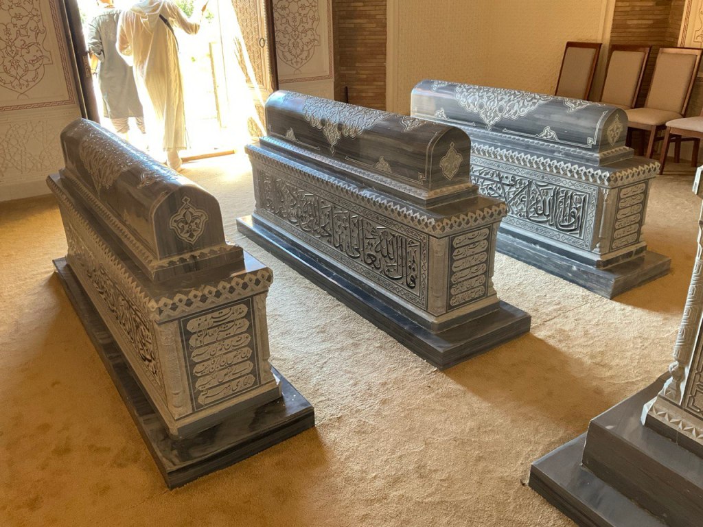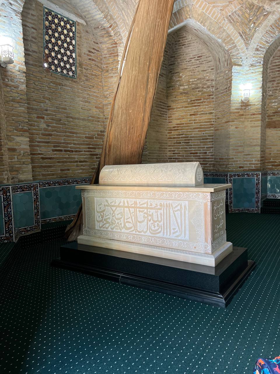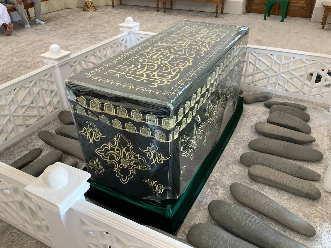 They said that chose to be buried in this area specifically because to his north is where the ṣaḥābī Quthum ibn ʿAbbās was buried, and to his south is the grave of Abū Muʿīzz ad-Dīn, a descendent of ʿUthmān (raḍiy Allāhu ʿanh). Around him are a number of tombstones that were found under a number of Jewish homes after the fall of the USSR. During the Soviet Union, many ethnic Jews of this area built their homes over graves and even used some of the tombstones as a part of their building material. They eventually found around 280 tombstones and have 20 of them displayed here.