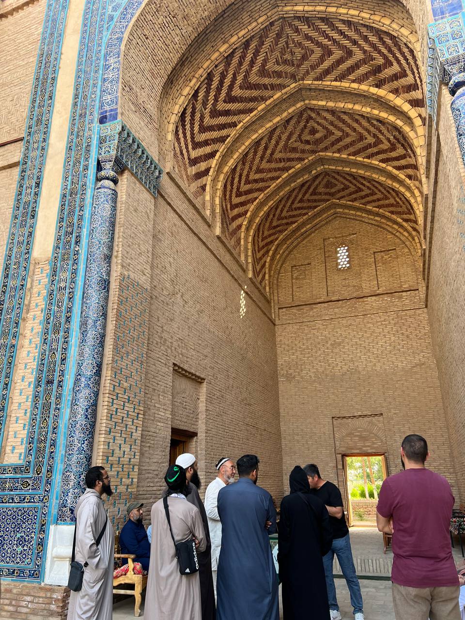 We started the day by visiting the grave of Imam Abū Manṣūr al-Māturīdī (d. 333 AH). Imam Abū Manṣūr al-Māturīdī was a prominent Sunni Muslim scholar, jurist, and theologian. He is renowned for being the eponymous founder of the Maturidi school of Islamic theology. Born in Samarkand, he adhered to the Ḥanafī jurisprudence and codified a theological doctrine that refuted heterodox opinions. His tomb lies in the Chokardiza cemetery in Samarkand, where it is claimed that over 3,000 scholars and theologians are buried.