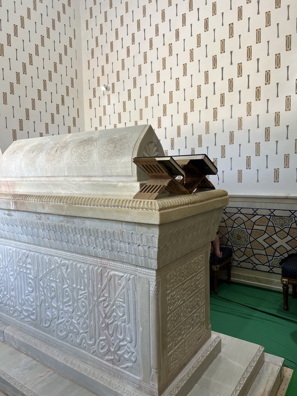 Finally, we sat by the grave of Imam al-Ḥakīm at-Tirmidhī (d. 255 AH), a Persian jurist, traditionist, and author of Tasawwuf. Born and died in Mā Warāʾ an-Naḥr, he also travelled to Balkh, Nishapur, Baghdad, and performed Hajj around the age of 28. Among his many contributions to Hadith, Fiqh, Arabic, Anthropology, and Tasawwuf, he wrote an autobiography titled ‘Badʾu Shaʾn Abī ʿAbdillāh’. We read the introductions of seven of his works to gain ijāza. I had the honour of reading his Nawādir al-Uṣūl and Bayān al-Farq Bayn as-Ṣadr wa al-Qalb. This was a significant moment for me; it’s rare for a female student to read in front of shuyūkh and ṭalaba, often considered unnecessary or not legislated. I’m deeply grateful to Shaykh Mohammed Daniel for this opportunity. Though I haven’t studied with him long, he encourages and motivates female students just as much as male students.